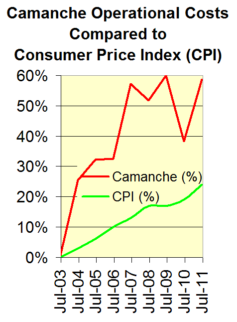 Camanche system, it only took 4 years for the cost to operate the system to increase by 60%. In just the first year, operational costs increased by 26%.