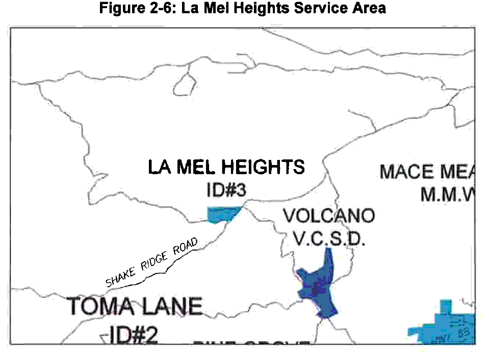 The La Mel water system serves about 60 homes in La Mel Heights along Ridge Road. La Mel is one of four
