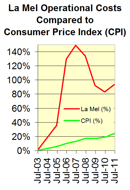If the La Mel system is not operated efficiently, costs to ratepayers will be excessive. The La Mel water system is the poster child for poorly operated water systems within AWA. Since 2003, La Mel operational costs have increased by 93%. In 2006 alone, costs went up 69%.